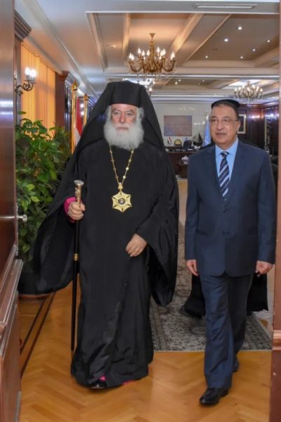 وتبادل صاحب الغبطة ومحافظ الإسكندرية الآراء وناقشا مختلف القضايا ذات الاهتمام المشترك، خاصة فيما يتعلق بطريركية الروم الأرثوذكس بالإسكندرية وعملها في المدينة الكبرى.
