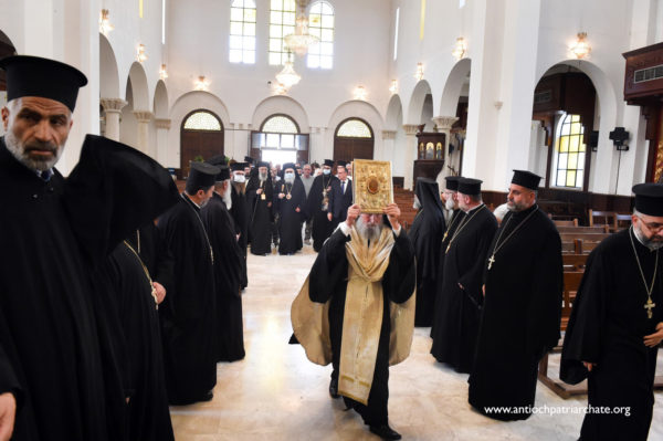 كان في استقباله على مدخل كاتدرائية القديس جاورجيوس صاحب السيادة المتروبوليت نيقولاوس (بعلبكي) ولفيف من الكهنة والشمامسة بالإضافة الى عدد من المؤمنين.