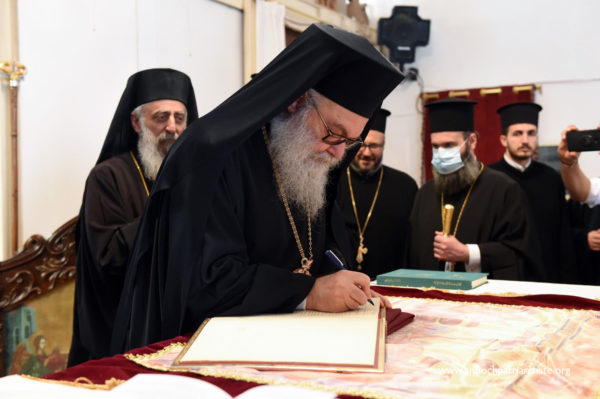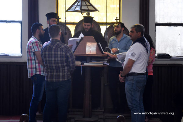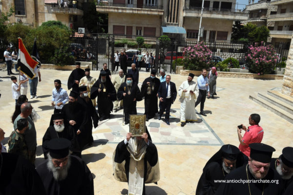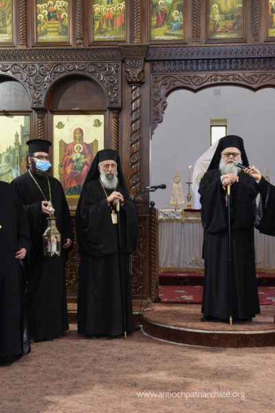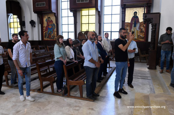 كان في استقباله على مدخل كاتدرائية القديس جاورجيوس صاحب السيادة المتروبوليت نيقولاوس (بعلبكي) ولفيف من الكهنة والشمامسة بالإضافة الى عدد من المؤمنين.
