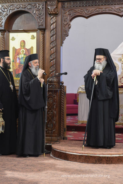 بعد صلاة الشكر توجه غبطته الى دار المطرانية حيث حضر أمين فرع الحزب في حماه السيد محمد أشرف باشوري ومحافظ مدينة حماه المهندس محمد طارق ريشاتي وعضو مجلس الشعب السيد ماهر قاورما والآباء الكهنة بالاضافة الى عدد من الرسميين والعسكريين وبعض أبناء الرعية.