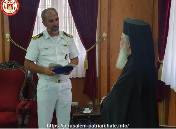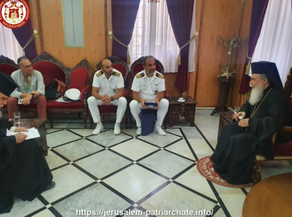 إستقبل غبطة البطريرك كيريوس كيريوس ثيوفيلوس الثالث صباح يوم السبت الموافق 3 تموز 2021 طاقم من البحرية القبرصية على رأسه القائد السيد جورج باباكليوفولوس, وقد قام وفد البحرية بزيارة البطريركية خلال تواجده في إسرائيل تحديداً في ميناء حيفا لصيانة السفينة “القائد أندرياس أيونيديس”.