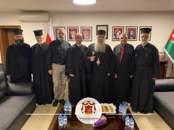 إستقبل صاحب السيادة المطران خريستوفوروس عطالله مطران الروم الأرثوذكس رئيس مجلس رؤساء الكنائس في الأردن يوم الخميس ٣ حزيران ٢٠٢١ في دار المطرانية بعمان كلاً من قدس الأب أنطون الدويهي الوكيل البطريركي في القدس للموارنة وقدس المونسينيور غازي خوري وقدس الأب جوزيف سويد.