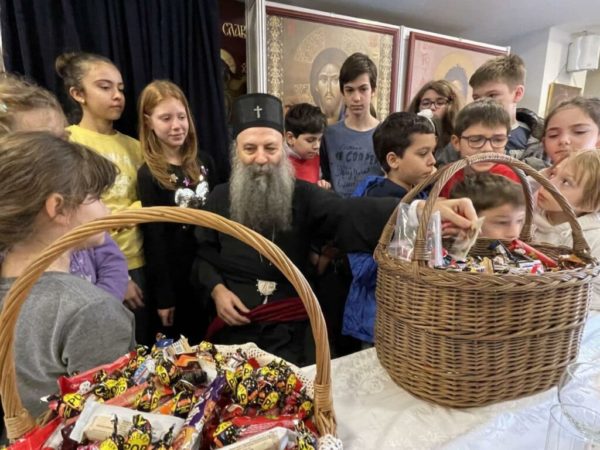 უწმიდესმა სრულიად სერბეთის პატრიარქმა პორფირემ ბელგრადის ერთ-ერთი საკათედრო ტაძრის სატრაპეზოში უმასპინძლა მზრუნველობამოკლებულ ბავშვებს.