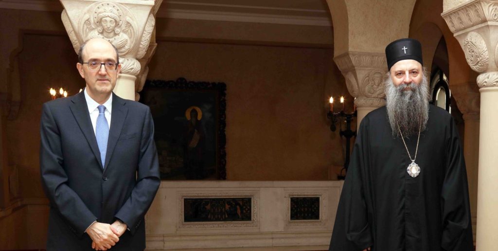 Италијански Амбасадор у Србији је честитао Патријарху српском устоличење у трон предстојатеља Српске Православне Цркве и истакао да је Италија чврсто посвећена дијалогу као решењу свих проблема на Западном Балкану и да у том погледу подржава мисију патријарха Порфирија на превазилажењу сукоба и подела зарад успостављања суживота у миру и узајамном поштовању.