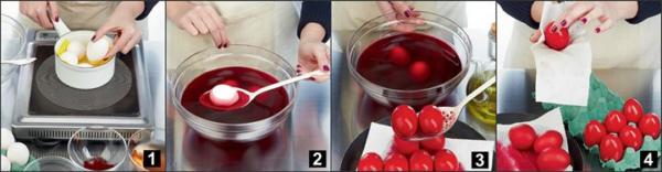 – FIGURA 1 – Lajini mirë vezët që doni të ngjyeni dhe i zieni në zjarr të ngadaltë që të mos thyhen.
