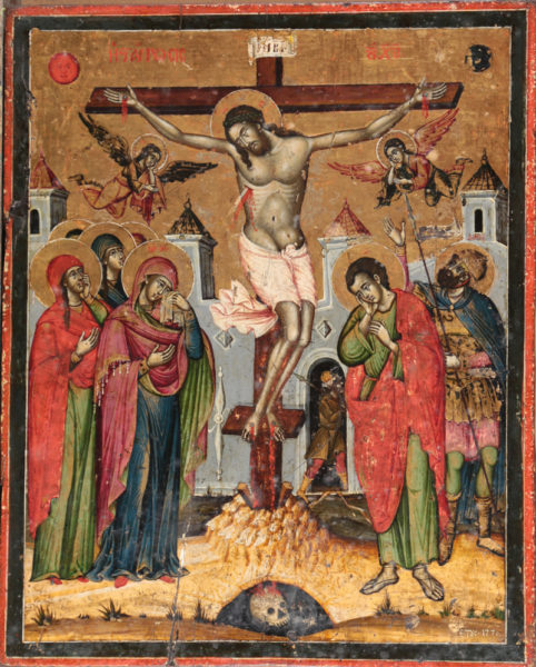 Ikona “Kryqëzimi”, është skena më e dhimshme që piktori Konstandin Zografi e ka punuar për ikonostasin e Kishës së Mitropolisë në Korçë në shekullin e XVIII