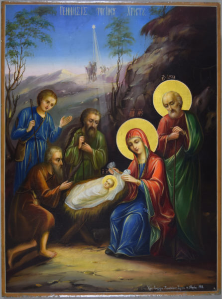 Ikona “Lindja e Krishtit” është punuar nga Evangjel Zengo ne vitin 1906. Është firmosur nga autori në fund të ikonës në të djathtë. Lindja e Krishtit përshkruhet me hollësi nga Ungjillorët. Ikonografia e saj thekson dy aspekte : Mishërimin e Zotit që është dhe thelbi i ngjarjes dhe efektin e saj në jetën reale.