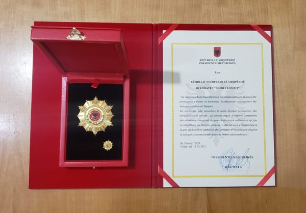 Të hënën, më 22 mars 2021, Presidenti i Republikës, Z. Ilir Meta, dekoroi Këshillin Ndërfetar të Shqipërisë me dekoratën e lartë “Nderi i Kombit”.