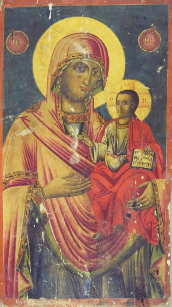 Shën Maria Hodigitria, ikona e periudhës postbizantine që ruhet në Muzeun e Artit Mesjetar në Korçë
