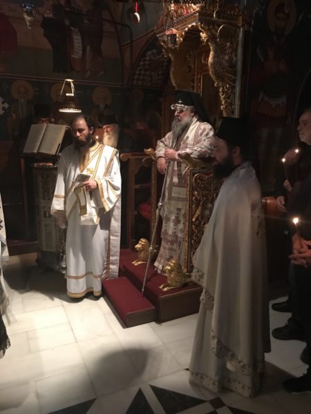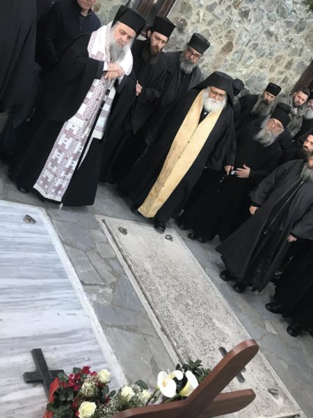 Με το πέρας της Θείας Λειτουργίας τέλεσε τρισάγιο στον τάφο του γέροντα. Ακολούθως, παρατέθηκε τράπεζα. Αφού αποχώρησαν οι προσκυνητές, ο Πανιερώτατος και οι Πατέρες της αδελφότητας μετέβησαν στο Καθολικό της Μονής για τη διαδικασία της εκλογής νέου Ηγουμένου. Νέος Ηγούμενος της Μονής εξελέγη ο ιερομόναχος Διονύσιος.