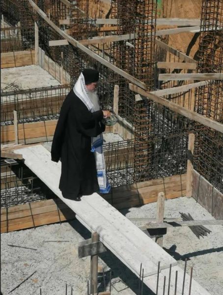 Εν όψει της θεμελίωσης αυτής, το μεσημέρι της 10ης Ιουνίου, ο φιλομόναχος Σεβασμιώτατος Μητροπολίτης Νέας Κρήνης και Καλαμαριάς κ. Ιουστίνος τέλεσε τον αγιασμό ευχόμενος και προσευχόμενος να περατωθούν τα έργα τόσο γρήγορα όπως και στην πρώτη πτέρυγα.