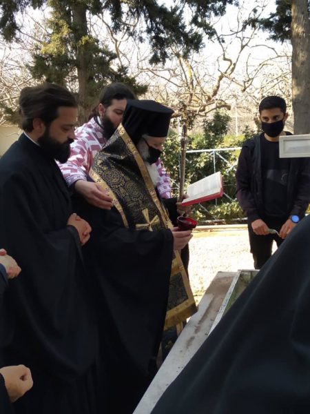 Προηγήθηκε στο Ι. Ησυχαστήριο του Αγίου Χριστοφόρου η τέλεσις Αρχιερατικής Θείας Λειτουργίας υπο του Σεβασμιωτάτου. Ο Σεβασμιώτατος ομίλησε συγκινητικά περί της αοιδίμου Καθηγουμένης.