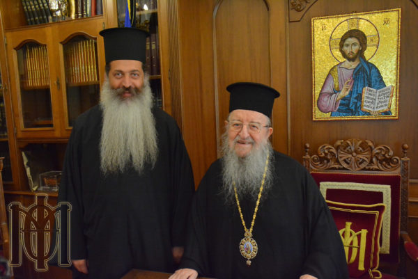 Μετά το πέρας της Θείας Λειτουργίας, ο Σεβασμιώτατος κ. Συμεών επισκέφθηκε την Ιερά Μητρόπολη Θεσσαλονίκης, προκειμένου να υποβάλλει σεβάσματα και ευχαριστίες προς τον Παναγιώτατο κ. Άνθιμο, με τον οποίο συζήτησαν επί μακρόν για διάφορα εκκλησιαστικά και κοινωνικά θέματα.