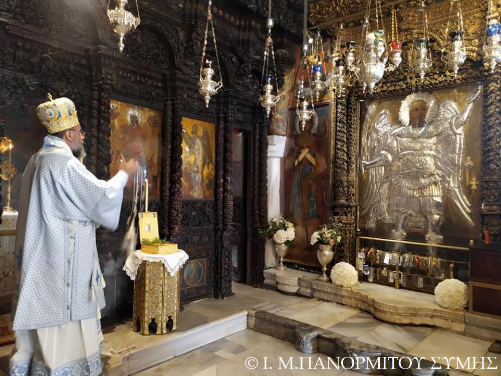 Σήμερα 1η Αυγούστου 2021, Κυριακή ΣΤ΄ Ματθαίου, ο Σεβ. Μητροπολίτης Σύμης κ. Χρυσόστομος χοροστάτησε στον Όρθρο, λειτούργησε και κήρυξε τον θείον λόγο, στην Ι. Μονή Πανορμίτου με συλλειτουργούς του τον Πανοσιολ. Καθηγούμενο Αρχιμανδρίτη π. Αντώνιο Πατρό, τον Οσιολογ. Ιερομόναχο π. Ανδρέα Δημητρίου και τον Ευλαβ. Διάκονο π. Γεώργιο Κακακιό, ενώ το ι. Αναλόγιο διακόνησε ο Πρωτοψάλτης της Ι. Μονής, κ. Μερκούριος Γιανναράς, Αναγνώστης, ο κ. Μιχαήλ Κυπριώτης και ο κ. Αντώνιος Τερεζάκης Αναγνώστης.