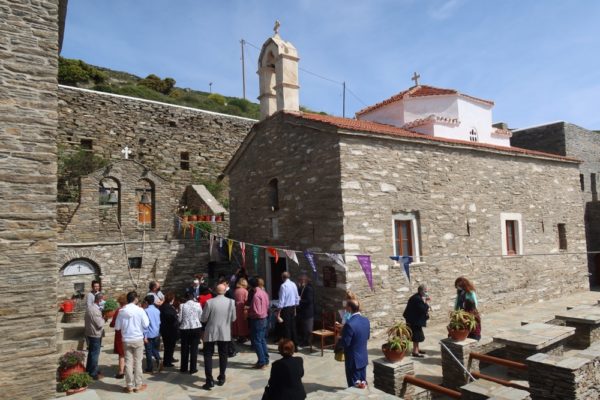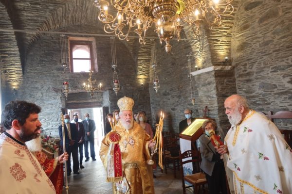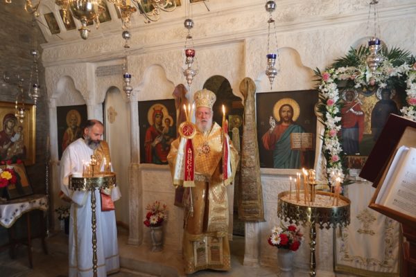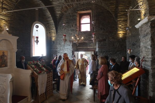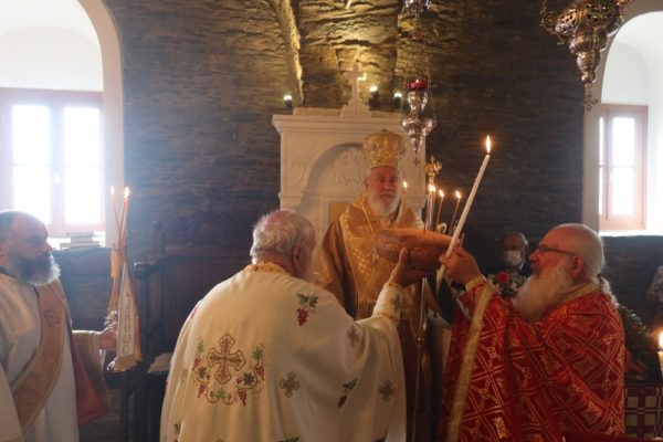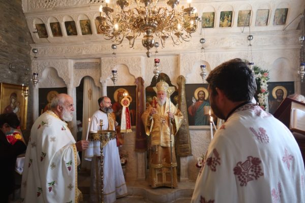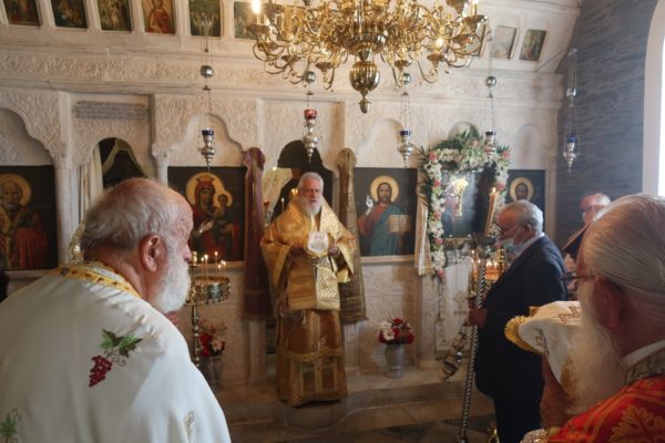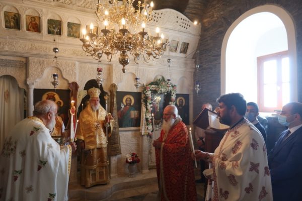 Με την παρουσία του Επάρχου Άνδρου κ. Δημ. Λάσκαρη και πιστών, τηρούντων τα μέτρα υγειονομικής προστασίας, ο Σεβασμιώτατος Μητροπολίτης Σύρου κ. Δωρόθεος Β΄ ιερούργησε το πρωί της Τετάρτης 5 Μαΐου στο Καθολικό της Ιεράς Μονής Αγίας Ειρήνης Αποικίων Άνδρου.