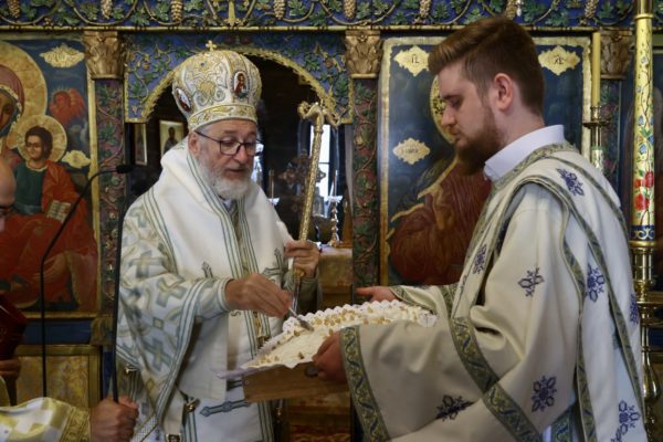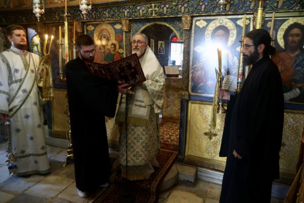 Την ακολουθία του όρθρου και την Αρχιερατική Θεία Λειτουργία τέλεσε ο Θεοφιλέστατος Επίσκοπος Αμορίου και Καθηγούμενος της Ιεράς Μονής κ. Νικηφόρος πλαισιούμενος από ιερείς και διακόνους και συμπροσευχομένου στο Ιερό του Σεβ. Μητροπολίτου Αρκαλοχωρίου κ. Ανδρέα.
