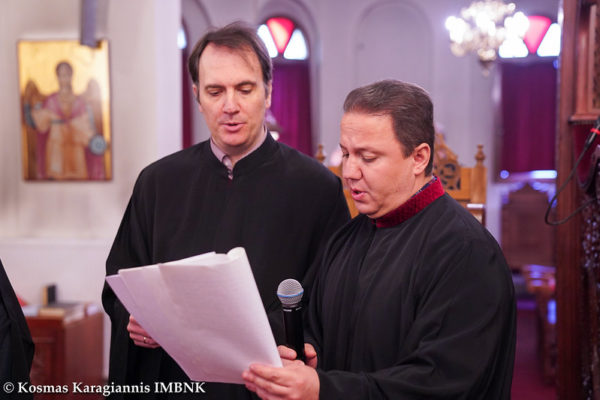 Στην Ιερά Ακολουθία έψαλλαν ο Πρωτοψάλτης του Ιερού Μητροπολιτικού Ναού των Αγίων Αποστόλων Πέτρου και Παύλου Βεροίας κ. Νικόλαος Χανουμίδης και ο Λαμπαδάριος του Ιερού Προσκυνηματικού Ναού του Αγίου Αντωνίου Βεροίας κ. Βασίλειος Γουδώνης.
