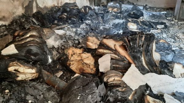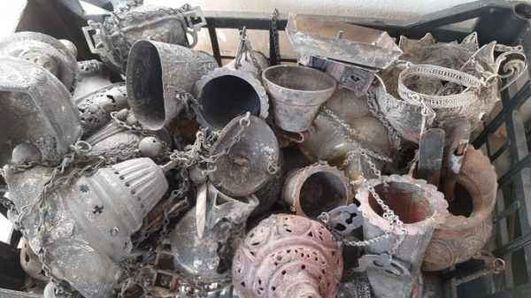 Οι μοναχοί συγκέντρωσαν τα κατεστραμμένα κειμήλια σε κούτες, όπως και κάποια από τα ιερά βιβλία, που έχουν μεγάλη ιστορική αξία. Θα τα παραδώσουν σε ειδικούς μήπως και μπορέσουν και σώσουν κάποια από αυτά.