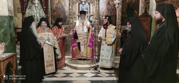Ευχαρίστησε στη συνέχεια όλους τους συντελεστές για το ωραίο αποτέλεσμα αυτής της κατανυκτικής τελετής και ιδιαίτερα τον Καθηγούμενο της Ιεράς Μονής, Ιερόθεο Παπαθανασίου, ο οποίος στη σύντομη αντιφώνησή του εξέφρασε την ευγνωμοσύνη του στον Σεβασμιώτατο, για την αγάπη με την οποία περιβάλλει τη Μονή και το ξεχωριστό ενδιαφέρον του για την εύρυθμη λειτουργία της και τον ευπρεπισμό των χώρων της. Και σε αυτή την Ακολουθία ο Μητροπολίτης μας, ως φιλομόναχος και φιλακόλουθος Ιεράρχης, περιέβαλε όλους τους πατέρες με ανεπιτήδευτο στοργικό ενδιαφέρον, αποδεικνύοντας έμπρακτα ότι στην Εκκλησία βρίσκει εφαρμογή το αξίωμα «η ισχύς εν τη ενώσει».