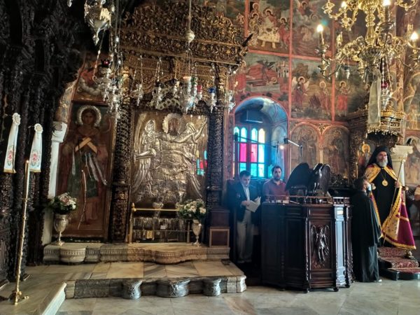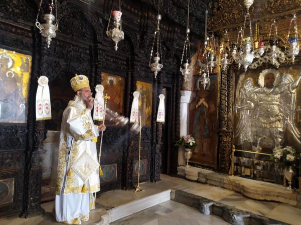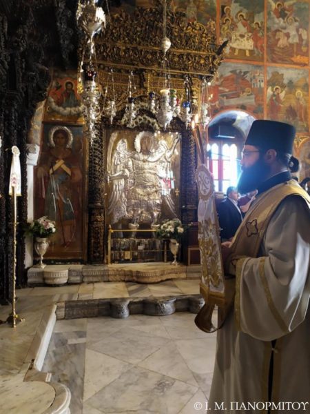 Την Κυριακή του Παραλύτου, 23η Μαΐου και 238η επέτειος των εγκαινίων του Καθολικού της Ιεράς Μονής Πανορμίτου, ο Σεβ. Μητροπολίτης Σύμης, Τήλου, Χάλκης και Καστελλορίζου κ. Χρυσόστομος χοροστάτησε στον Όρθρο και τέλεσε την Θ. Λειτουργία στο Αρχαγγελικό αυτό Θυσιαστήριο, με συλλειτουργούς του τον Πανοσιολ. Καθηγούμενο π. Αντώνιο και τους Διακόνους μας π. Σεραφείμ Βιολάκη και π. Γεώργιο Κακακιό. Το αναλόγιο διακόνησαν σεμνοπρεπώς ο Πρωτοψάλτης της Μονής κ. Μερκούριος Γιανναράς, μετά του κ. Μιχαήλ Κυπριώτη, ενώ, πέραν των ευαρίθμων πιστών, λίαν τιμητική ήταν και η συμμετοχή του Δημάρχου Σύμης κ. Ελευθερίου Παπακαλοδούκα.