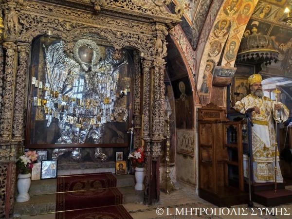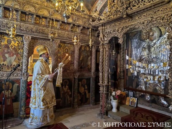 Στην Σταυροπηγιακή Ι. Μονή Ταξιάρχου Μιχαήλ του Ρουκουνιώτου σήμερα 9η Μαΐου 2021, Κυριακή του Θωμά, ο Σεβασμιώτατος Μητροπολίτης Σύμης κ. Χρυσόστομος χοροστάτησε στον Όρθρο, λειτούργησε και κήρυξε τον θείο λόγο, με συλλειτουργούς του τον Ιεροεπιστάτη της Μονής Πρωτοπρ. π. Στέφανο Μακρή, τον π. Αντώνιο Μανιά και τον Διάκονο π. Γεώργιο Κακακιό.