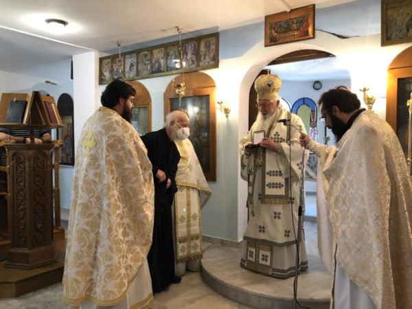 Μετά τη Θεία Λειτουργία ο Σεβασμιώτατος συνεργάστηκε με τους Επιτρόπους σχετικά με θέματα του Ναού, ο οποίος λειτουργεί στον υπόγειο χώρο, αφού ο κυρίως Ναός δεν έχει αποπερατωθεί.