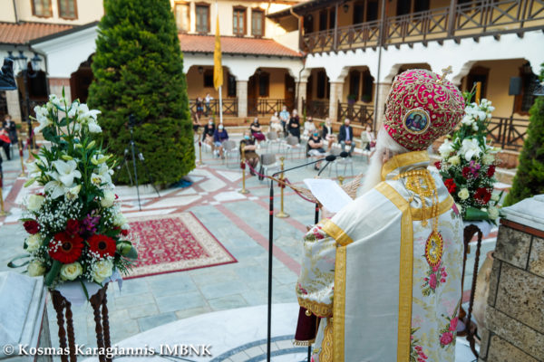 Φέτος, λόγω των περιοριστικών μέτρων οι Ιερές Πανηγυρικές Ακολουθίες τελούνται στον αύλειο χώρο της Ιεράς Μονής έμπροσθεν του θαυματουργού Αγιάσματος.