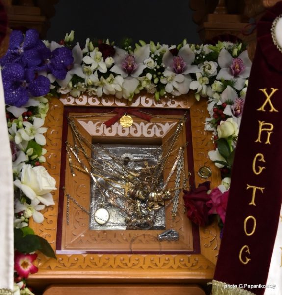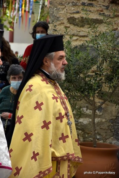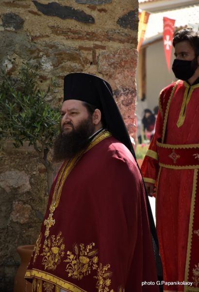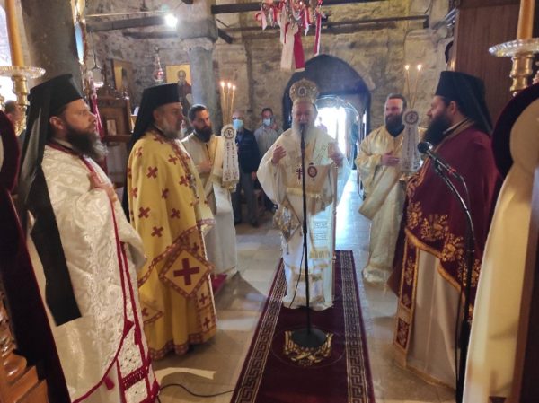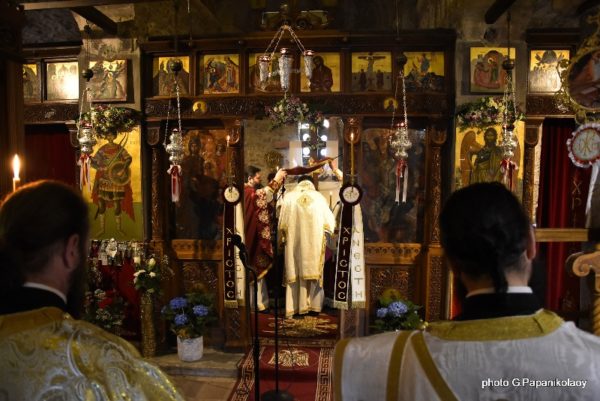 Στον Μεγάλο Πανηγυρικό Εσπερινό της παραμονής προεξήρχε και κήρυξε τον θείο λόγο ο Αρχιμ. Τιμόθεος Μπαϊμπάκης-Ιεροκήρυξ της Ιεράς Μητροπόλεως και αδελφός της Ιεράς Μονής, συμμετεχόντων και πατέρων – αδελφών της Ιεράς Μονής, ενώ ανήμερα χοροστάτησε στον Όρθρο και προεξήρχε της Θείας Λειτουργίας ο Σεβασμιώτατος, συλλειτουργούντων των αδελφών της Ι. Μονής Αρχιμ. Νικηφόρου Ευσταθίου Γενικού Αρχιερατικού Επιτρόπου, του Ηγουμένου Αρχιμ. Χριστοδούλου Μάνια, του Αρχιμ. Χριστοφόρου Παπαθανασίου, Οικονόμου της Ι. Μονής και των Διακ. Νικολάου Πριμηκυρίου και Ευγενίου Τσάλλα, ενώ την ιερά Υμνωδία διηκόνησε εξαιρετικά Χορός μαθητών της Σχολής Βυζαντινής Μουσικής της Ιεράς Μητροπόλεως, υπό την διεύθυνση του κ. Στυλιανού Μπενή.