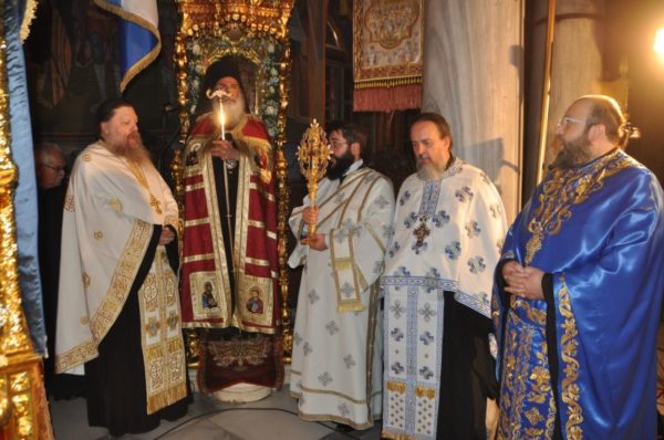 Το απόγευμα της παραμονής εψάλλη ο Μέγας Πανηγυρικός Εσπερινός της εορτής χοροστστούντος του Σεβασμιωτάτου Μητροπολίτη Αδριανουπόλεως κ. Αμφιλοχίου, ο οποίος κήρυξε και τον Θείο Λόγο.