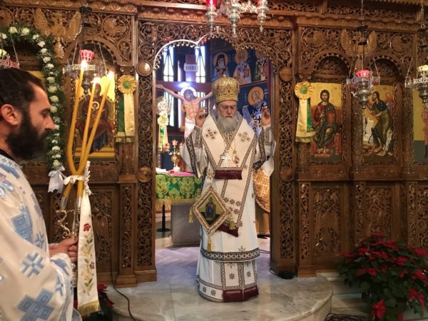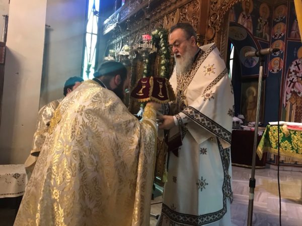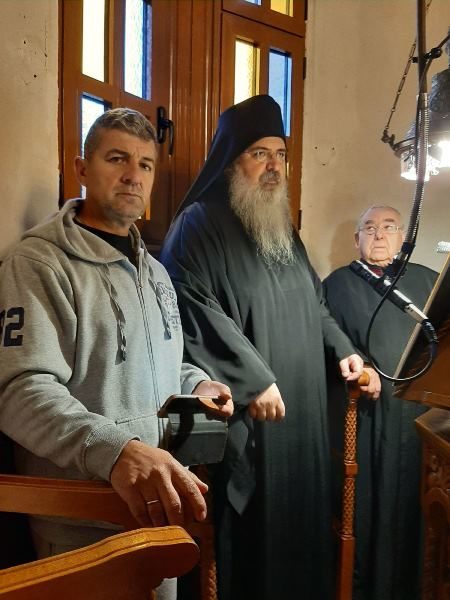 Ο Σεβασμιώτατος ιερούργησε πλαισιούμενος από τους Οσ. Ιερομ. π. Παντελεήμονα Λιλιόπουλο, Αιδεσ. π. Δημήτριο Μπαλλά και τους Διακόνους του. Το Ιεροψαλτικό αναλόγιο εκόσμησε ο Πνευματικός της Ι. Μονής Πανοσ. Αρχιμ. π. Άνθιμος Παπαλεξόπουλος, Ιεροκήρυξ της Ι. Μητροπόλεως μας και Καθηγούμενος της Ι. Μονής Παναγίας «Πάντων Χαρά».