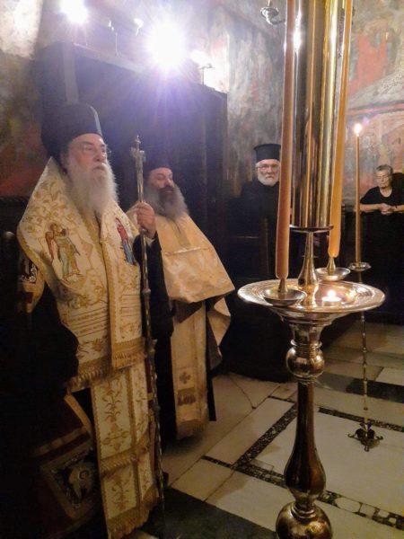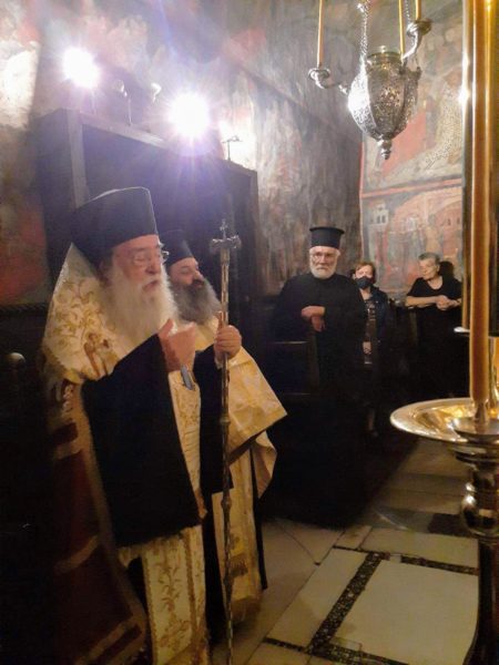 Πριν την έναρξη της Ακολουθίας της Αγρυπνίας, ο Καθηγούμενος και Πατριαρχικός Έξαρχος Πάτμου ο Πανοσιολογιώτατος Αρχιμανδρίτης του Οικουμενικού Θρόνου κ. Κύριλλος κάλεσε μοναχούς και πιστούς να προσέλθουν στον ναό.