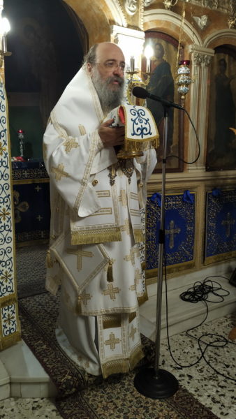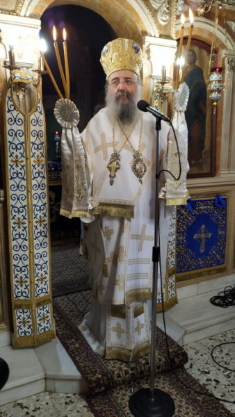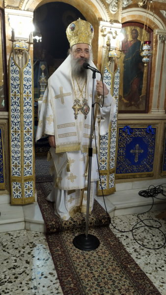 Με την ανοχή δυστυχώς των μεγάλων δυνάμεων, τόνισε ο Σεβασμιώτατος, συνεχίζεται ένα δράμα για την Κύπρο, το οποίο άρχισε 47 χρόνια πριν, με την βάρβαρη τουρκική εισβολή στο νησί. Χιλιάδες αγωνιστές πότισαν με το αίμα τους, τα άγια χώματα της Κύπρου, Ελληνοκύπριοι και Ελλαδίτες, χιλιάδες οι αγνοούμενοι και ασυγκρίτως περισσότεροι οι εκτοπισμένοι από τις αιώνιες, Ελληνικές, Ορθόδοξες, πατρογονικές Εστίες τους.