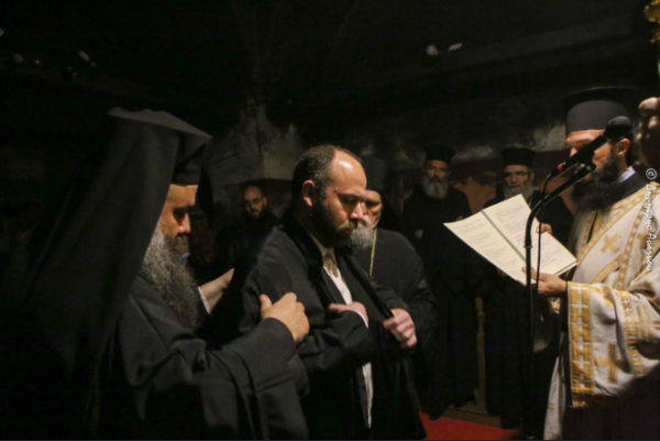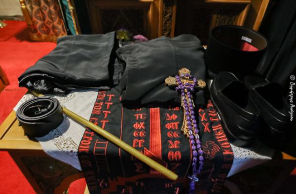 Η Ακολουθία της μοναχικής κουράς μετεδόθη απευθείας μέσω του Ραδιοφωνικού Σταθμού της Ιεράς Μητροπόλεως Φθιώτιδος (89,4 Fm) και από διαδικτύου, ενώ το νέο μοναχό προσήγαγε ο Άγιος Πρωτοσύγκελλος της Ιεράς Μητροπόλεως και Καθηγούμενος της Μονής Πανοσιολ. Αρχιμ. π. Άγγελος Ανθόπουλος μαζί με τον Άγιο Καθηγούμενο της γείτονος Ιεράς Μονής Αγίου Γεωργίου Στυλίδος Πανοσιολ. Αρχιμ. π. Ιγνάτιο Σάπιο, παρουσία και του Αγίου Γενικού Αρχιερατικού Επιτρόπου της Ιεράς Μητροπόλεως Αιδεσιμολ. Πρωτ. π. Νεοφύτου Ραφαηλίδη.