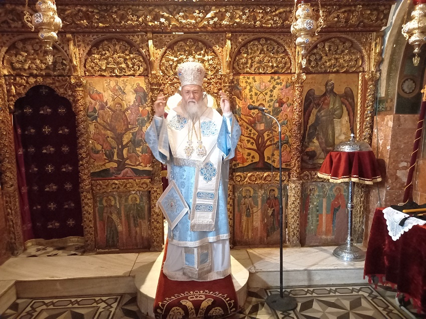 Ο Σεβασμιώτατος στο κήρυγμα του μίλησε αρχικά για την μνήμη των τριακοσίων δέκα και οκτώ Θεοφόρων Πατέρων, που συγκρότησαν την Α΄ Οικουμενική Σύνοδο στην Νίκαια της Βιθυνίας, υπό την προεδρία του Αυτοκράτορα Αγίου Κωνσταντίνου του Μεγάλου. Οι Άγιοι Πατέρες αγωνίστηκαν να διασώσουν τις αλήθειες της Πίστεώς μας τονίζοντας την Θεανθρωπότητα του Κυρίου ημών Ιησού Χριστού. Η αλήθεια της Πίστεώς μας δεν κρύβεται και αυτός που πιστεύει σε Αυτόν οφείλει να κηρύττει τον Χριστό με τον λόγο του, τον τρόπο του και την βιωτή του. Στην συνέχεια αναφέρθηκε στον βίο της Αγίας Θεοδώρας της Βασιλίσσης, η όποια διαδραμάτισε σημαντικό ρόλο στην πολιτική και θρησκευτική πάλη γύρω από το ζήτημα της αποδόσεως τιμής ή όχι των Ι. Εικόνων, και παραμένοντας πιστή στα Δόγματα της Αγίας Εκκλησίας μας, στερέωσε την Ορθοδοξία. Η μνήμη της Αγίας συνεορτάζεται με αυτή του Αγίου Βλασίου και γι’ αυτό ο Σεβασμιώτατος επέλεξε να ονομάσει την νέα Μοναχή της Ι. Μονής Θεοδώρα, ευχόμενος να είναι αυτή Θεού δώρο, να ζει έχοντας ως πρότυπο της την Αγία και αγωνιζόμενη ως μοναχή να τηρεί τις αλήθειες της Ορθοδόξου Πίστεως μας.