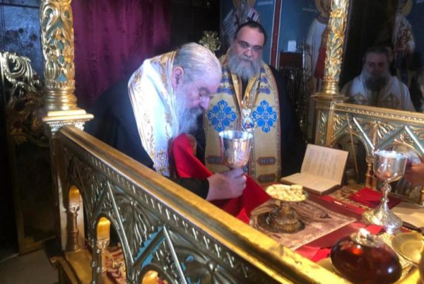 Μετά το πέρας της Θείας Λειτουργίας μετέβησαν εν πομπή στο Συνοδικό της Μονής, όπου ο νέος Ηγούμενος δέχθηκε τις ευχές των Αρχιερέων, του κλήρου και των προσκυνητών.