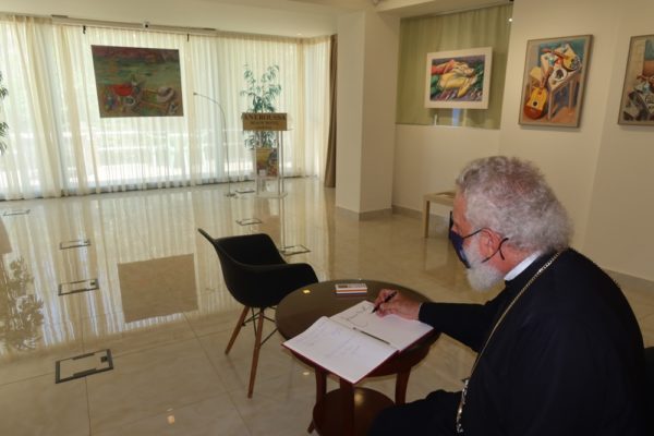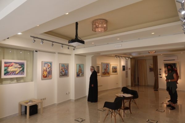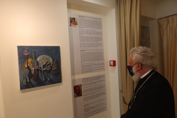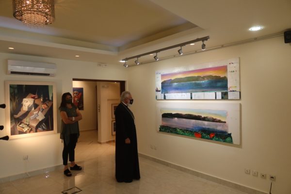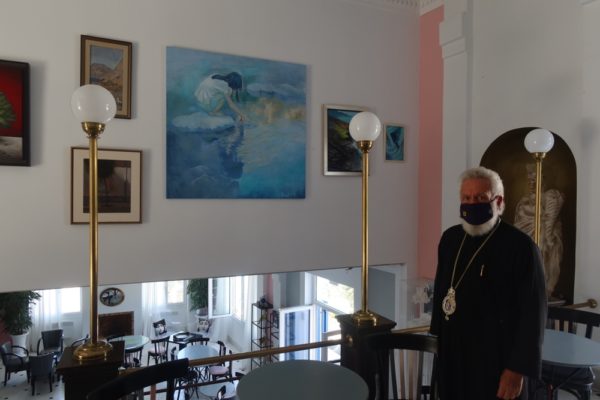 Προ της αναχωρήσεώς του από την Άνδρο, ο Σεβασμιώτατος επεσκέφθη την Έκθεση με έργα του αειμνήστου Παύλου Σαμίου και του κ. Μανώλη Χάρου, που φιλοξενείται στο Ξενοδοχείο “ΑΝΕΡΟΥΣΑ”.