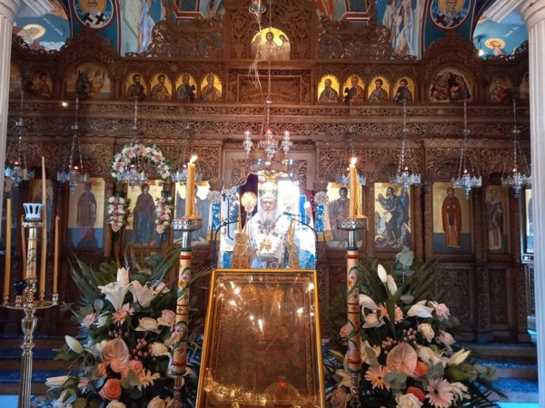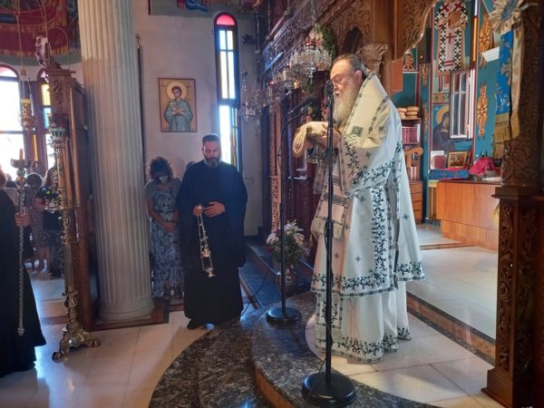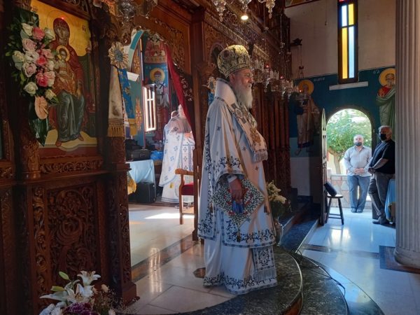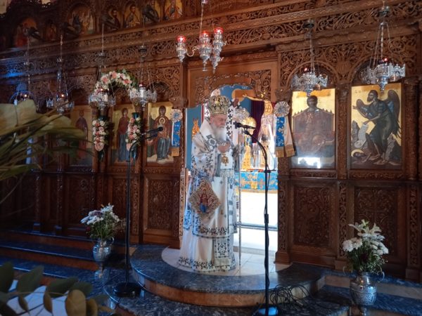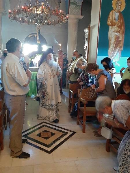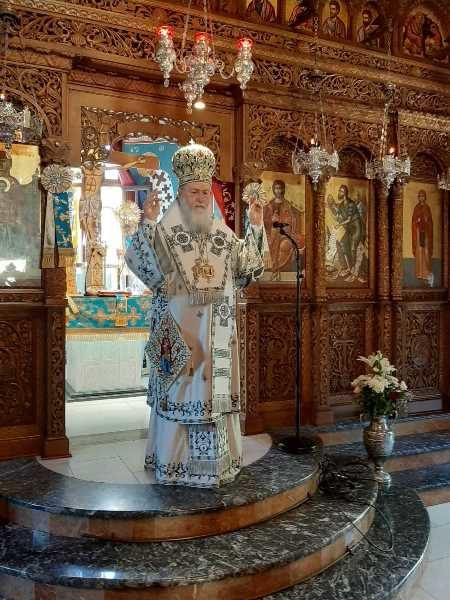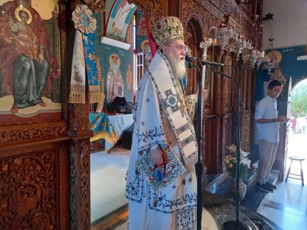 Λίγο πριν την απόλυση της Θείας Λειτουργίας ο Σεβασμιώτατος επεσήμανε, ότι η ζωή μας σήμερα είναι γεμάτη από πόνο, απογοήτευση, ασθένειες και «αποκαΐδια», αφού αναντίρρητα βιώνουμε μια από τις δυσκολότερες περιόδους της ιστορίας του τόπου μας. Αντί όμως να αισθανόμαστε ότι κάπου πρέπει να στρέψουμε τα μάτια μας για να λάβουμε βοήθεια ώστε να ορθοποδήσουμε, όπως μάθαμε από τους πατέρες μας, που μας προέτρεπαν σε τέτοιες καταστάσεις να στρέφουμε τα βλέμματά μας στον Θεό και την Παναγία Μητέρα Του, εμείς απευθυνόμαστε οπουδήποτε αλλού εκτός από εκεί. Θεοποίησαμε τον εαυτό μας και τις δυνάμεις μας και περιφρονήσαμε τον Θεό. Και αντί να επιλύσουμε τα προβλήματά μας τα αυξήσαμε, τα μεγαλώσαμε και ήδη βρισκόμαστε δεινώς βασανιζόμενοι. Η λύση, που προτείνει η Εκκλησία είναι να παρακαλούμε τον Θεό και την Παναγία Μητέρα Του να φωτίσει τα παιδιά μας, καθώς αυτά είναι το μέλλον, να αλλάξουν ρότα και να οδηγηθούν στην γνώση της αλήθειας και του Θεού! Και επειδή αυτό, με τον τρόπο τον οποίο εμείς οι ίδιοι τα μεγαλώσαμε φαντάζει ανέφικτο, υπάρχει και άλλη λύση, όπως πρότεινε ο Όσιος Παΐσιος ο Αγιορείτης: «Δεν είναι η εποχή να μιλάμε στα παιδιά μας για τον Θεό, παρά είναι η εποχή να μιλάμε στον Θεό για τα παιδιά μας». Η Θεία Πρόνοια ας αναλάβει δράση. Ας παρακαλέσουμε απλά την Παναγία μας να φιλάει τους νέους και τις νέες μας. Όλα τ’ άλλα τα δοκιμάσαμε.