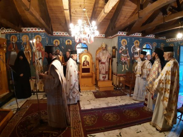 Ο Σεβασμιώτατος κ. Συμεών, συνοδευόμενος από τον Άγιο Πρωτοσύγκελλο της Ιεράς Μητροπόλεως Πανοσιολ. Αρχιμ. π. Άγγελο Ανθόπουλο, ιερούργησε στην Μονή και εγκατέστησε τον πρώτο της εντεταλμένο, αναθέτοντάς του καθήκοντα Ηγουμένου, τον Αρχιμ. π. Παρθένιο Κουκούλη μαζί με ένα δόκιμο μοναχό.
