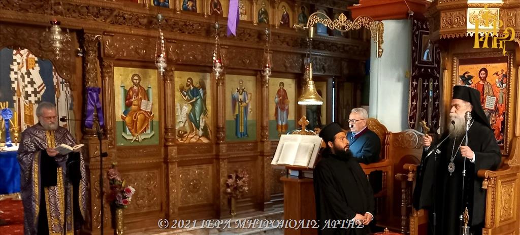Την Μεγάλη Τρίτη, 27 Απριλίου 2021, το εσπέρας, στην ενορία Παμμεγίστων Ταξιαρχών της πόλεως Άρτης, ο Σεβασμιώτατος Μητροπολίτης Άρτης κ. Καλλίνικος χοροστάτησε στην Ακολουθία του Νυμφίου.
