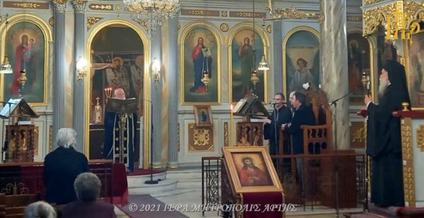 Την Κυριακή των Βαΐων, 25 Απριλίου 2021, το εσπέρας, στον ενοριακό Ιερό Ναό Αγίου Γεωργίου, της πόλεως Άρτης, χοροστάτησε στην Ακολουθία του Νυμφίου ο Σεβασμιώτατος Μητροπολίτης Άρτης κ. Καλλίνικος.