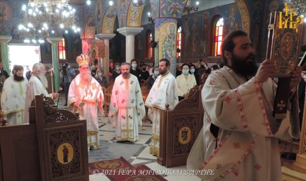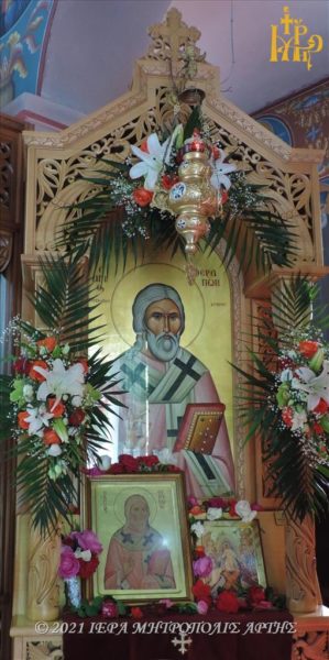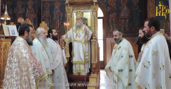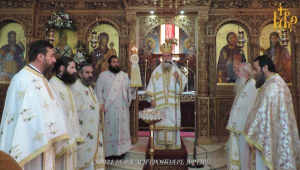Την Παρασκευή 14 Μαΐου 2021, το πρωί, στον πανηγυρίζοντα Ενοριακό Ιερό Ναό του Αγίου Θεράποντος, Αγίων Αναργύρων Άρτης, τελέστηκε Θεία Λειτουργία, προεξάρχοντος του Σεβασμιωτάτου Μητροπολίτου Άρτης κ. Καλλινίκου.
