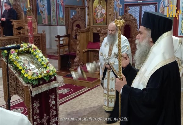 Ο Σεβασμιώτατος, στο κήρυγμά του, αναφερόμενος στην φράση: «Χαίρε το Φως αρρήτως γεννήσασα», τόνισε, ότι γινόμαστε παιδιά της Θεοτόκου, αφήνοντας τα σκοτεινά έργα και ζώντας ως «τέκνα Φωτός».