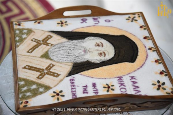 Ετέθη σε προσκύνηση απότμημα του τιμίου Λειψάνου του τιμωμένου Αγίου.