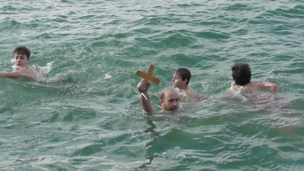 Τα παιδιά Ανδρέας, Χρήστος και Στυλιανός – Ραφαήλ Καραγεώργος βούτηξαν στα κρύα νερά του Αμβρακικού και έπιασαν τον Τίμιο και Ζωοποιού Σταυρό που έριξε ο π. Γρηγόριος Μπαλής, εφημέριος του Ιερού Ναού Αποστόλου Παύλου Μενιδίου.