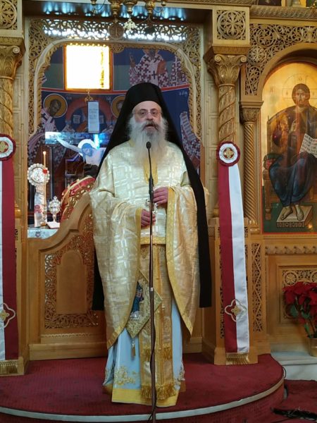 Στο κήρυγμά του ο Σεβασμιώτατος αναφέρθηκε στις εξορίες του Αγίου Αθανασίου και επεσήμανε ότι: “ο Άγιος Αθανάσιος παρά τους διωγμούς, τις ταλαιπωρίες και την εχθρότητα των αρειανών, διατήρησε αλώβητη και αδαμαντίνη την πίστη του, έζησε αγιασμένη ζωή κοντά στον Άγιο Αλέξανδρο και τον Άγιο Αντώνιο, αλλά και διατήρησε την ομολογία της ορθοδόξου αληθείας έχοντας θυσιαστική αγάπη προς τον Κύριο”.