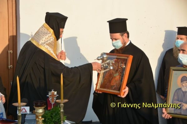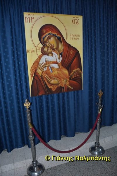 Ο Μητροπολίτης μετέφερε στο νέο ημιυπόγειο ναό την εφέστια εικόνα της Παναγίας “Η Πάντων Ελπίς”, μία εικόνα του 17ου αιώνα, που δωρήθηκε με παρέμβαση της Θεοτόκου στην Μητρόπολή από έναν σεβάσμιο κληρικό και πανεπιστημιακό καθηγητή της Αθήνας.