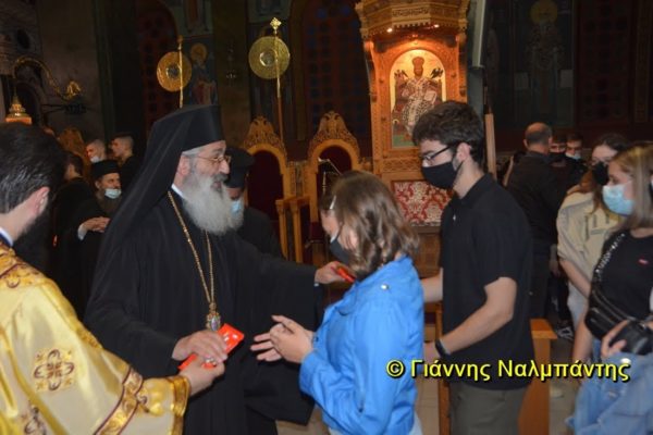 Μετά το πέρας της Θείας Λειτουργίας ο Μητροπολίτης μας ευχήθηκε προσωπικά στο κάθε παιδί δίνοντας ως δώρο από ένα στυλό και μία σοκολάτα.