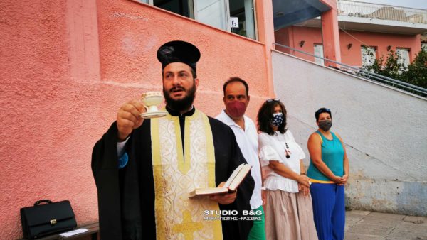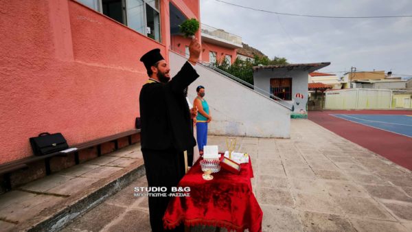 Συγκεκριμένα, ο Αγιασμός στο 1ο Δημοτικό Σχολείο Ναυπλίου, φέτος ήταν διαφορετικός από κάθε άλλη χρονιά λόγω των μέτρων για τον κορονοϊό. Τον Αγιασμό τέλεσε ο π. Βασίλειος Σουλάνδρος, παρουσία της Διευθύντριας του σχολείου Χρύσα Σαββάκη. Στο προαύλιο παρακολούθησαν τον αγιασμό μόνο τα πρωτάκια και εκπρόσωποι των δασκάλων του σχολείου, ενώ οι γονείς παρέμειναν έξω από το σχολείο.