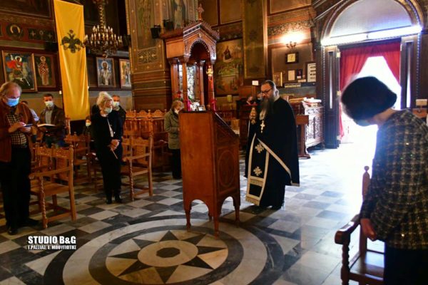 Με όλα τα μέτρα για την τήρηση της υγειονομικής ασφάλειας των πιστών, τελέσθηκε η ακολουθία των Παθών και του όρθρου της Μεγάλης Παρασκευής στον Μητροπολιτικό Ιερό ναό του Αγίου Γεωργίου στο Ναύπλιο την Μεγάλη Πέμπτη 29 Απριλίου 2021.