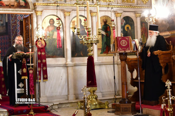 Την ακολουθία τέλεσε ο εφημέριος του ναού πρωτοπρεσβύτερος π. Παναγιώτης Κιντής ,ενώ καθόλη την ακολουθία έψαλλε ο μητροπολίτης Αργολίδας κ. Νεκτάριος .